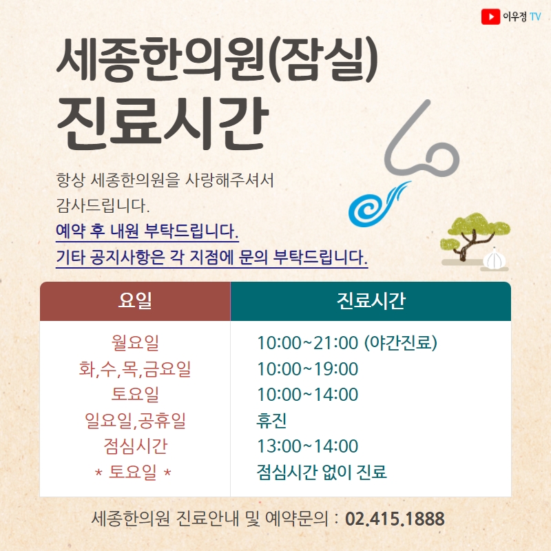 [진료시간 안내] 세종한의원(서울잠실지점)