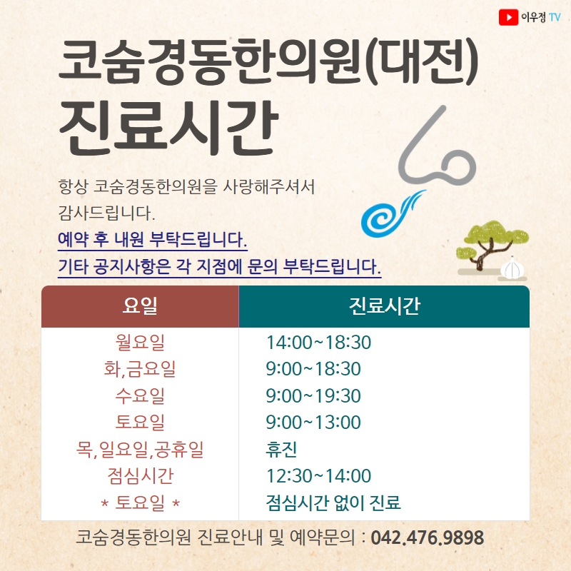 [진료시간 안내] 코숨경동한의원(대전지점)