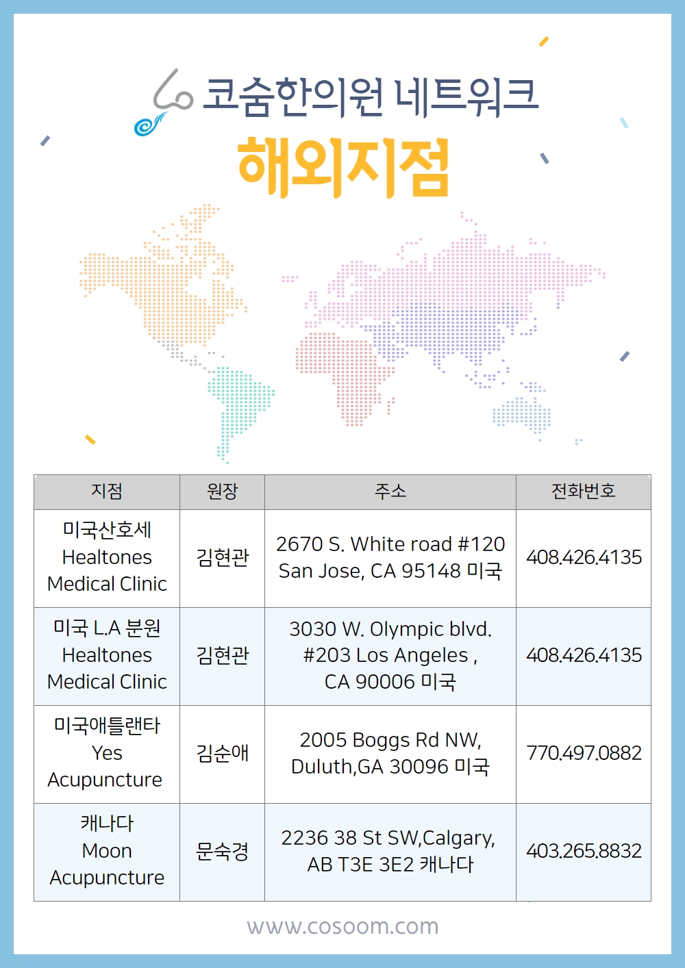 [해외지점안내] 코숨한의원네트워크 해외지점 안내입니다.